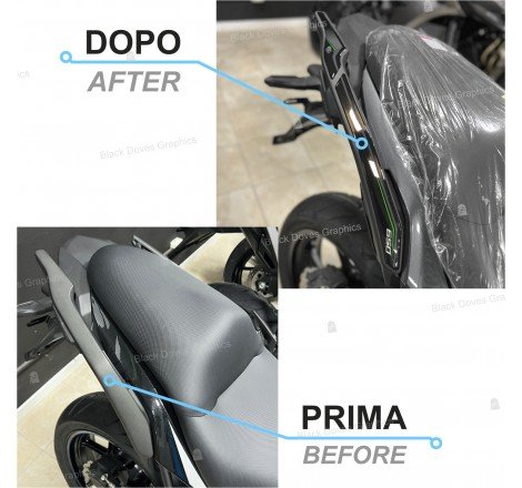 Tutti gli adesivi sono realizzati in resina poliuretanica trasparente effetto lucido, per una protezione efficace e un look premium coordinato.